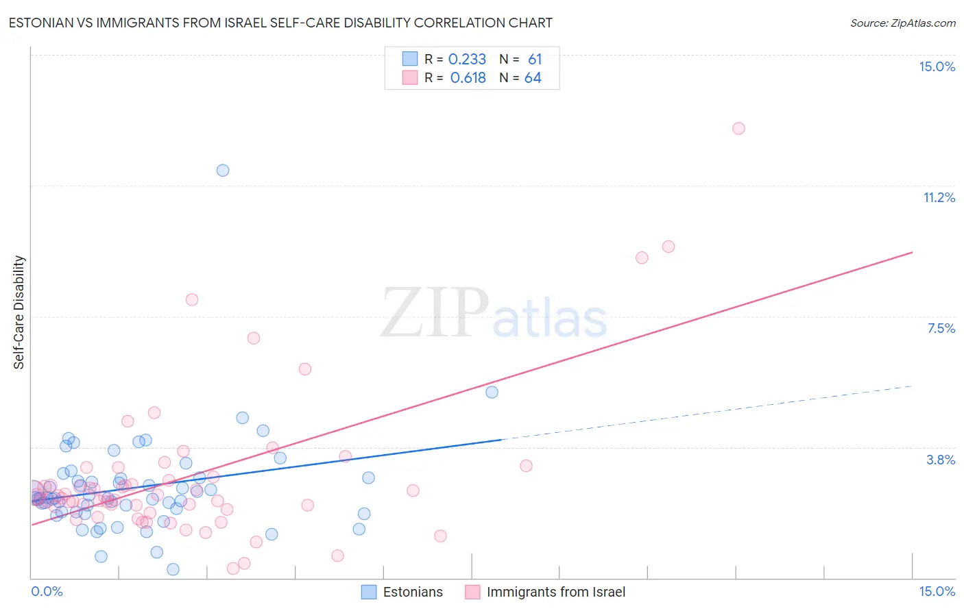 Estonian vs Immigrants from Israel Self-Care Disability Correlation Chart