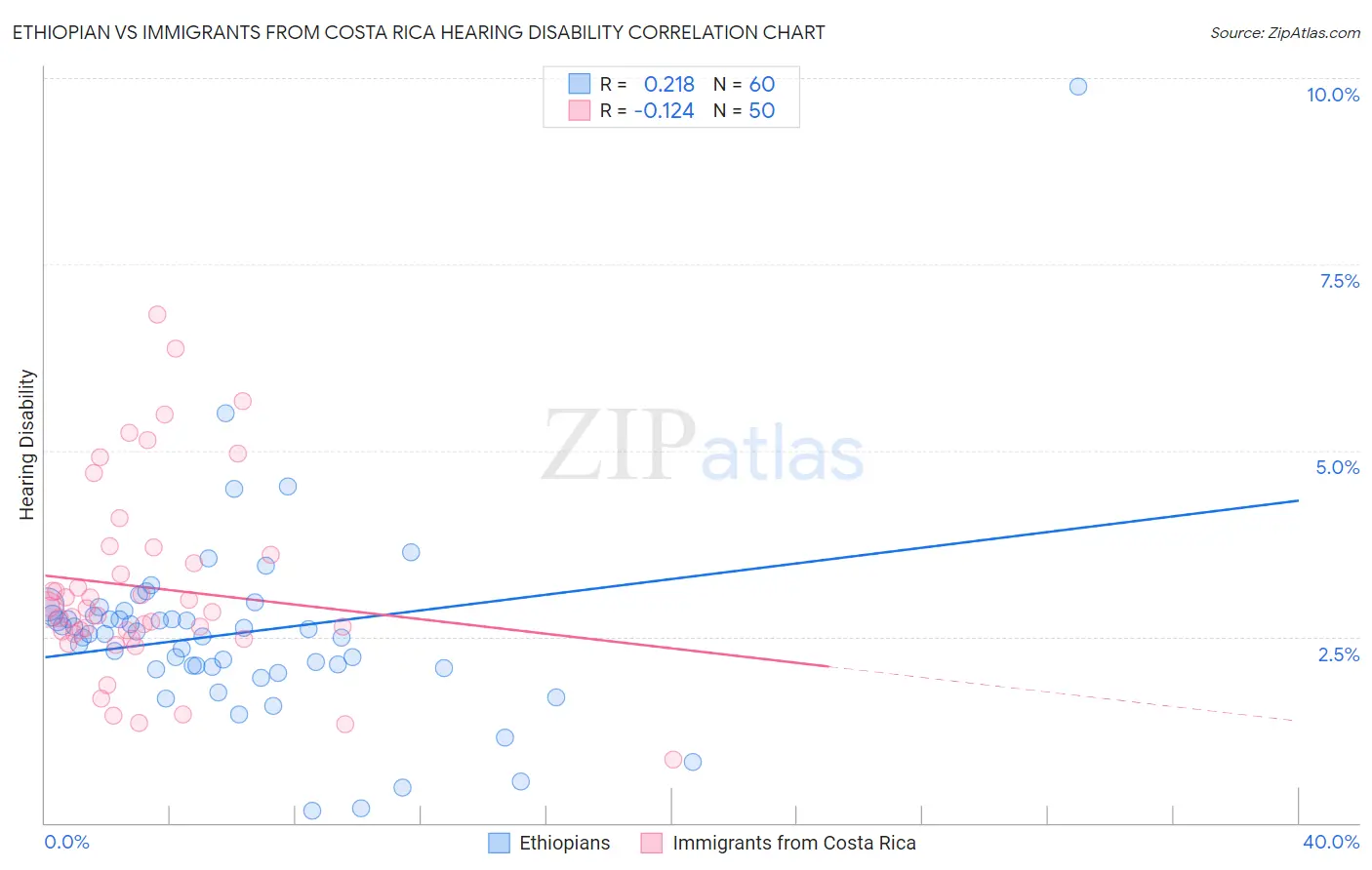 Ethiopian vs Immigrants from Costa Rica Hearing Disability Correlation Chart