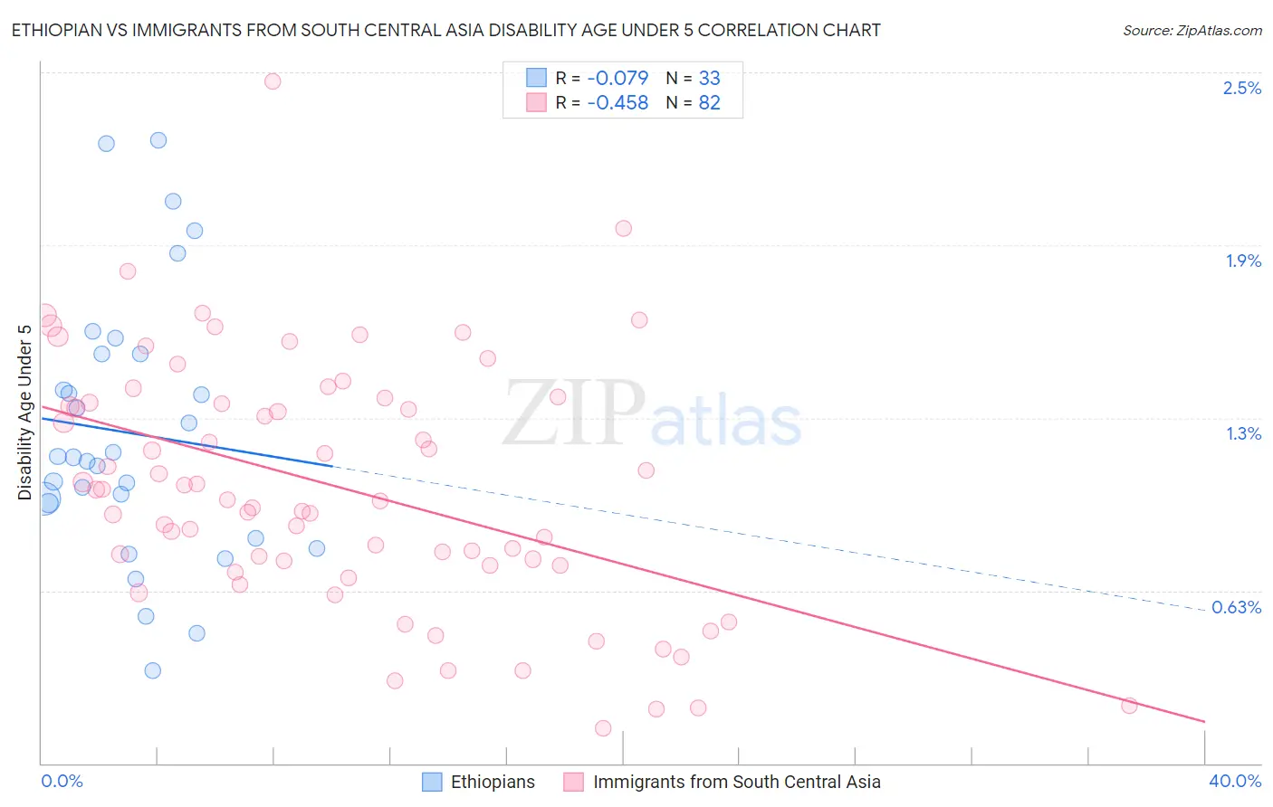 Ethiopian vs Immigrants from South Central Asia Disability Age Under 5