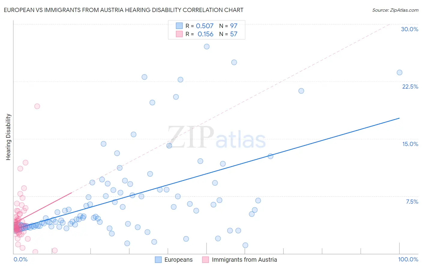 European vs Immigrants from Austria Hearing Disability Correlation Chart