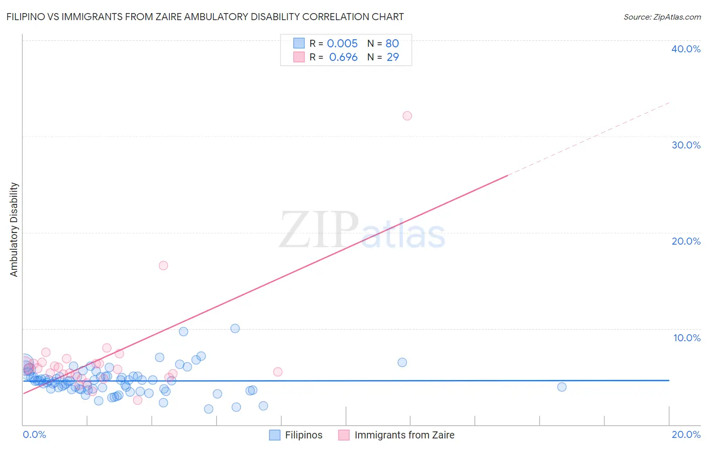 Filipino vs Immigrants from Zaire Ambulatory Disability Correlation Chart