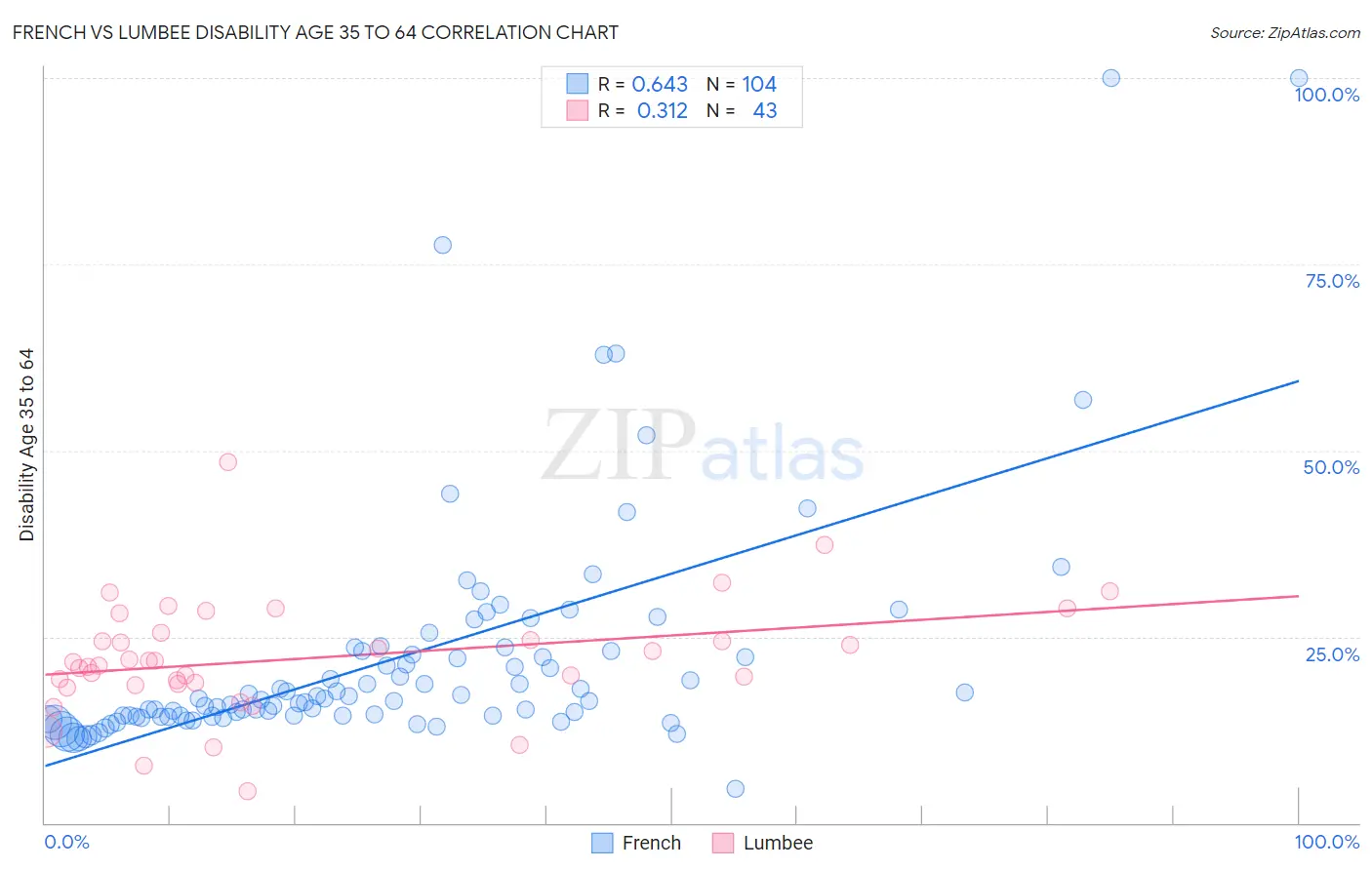 French vs Lumbee Disability Age 35 to 64 Correlation Chart