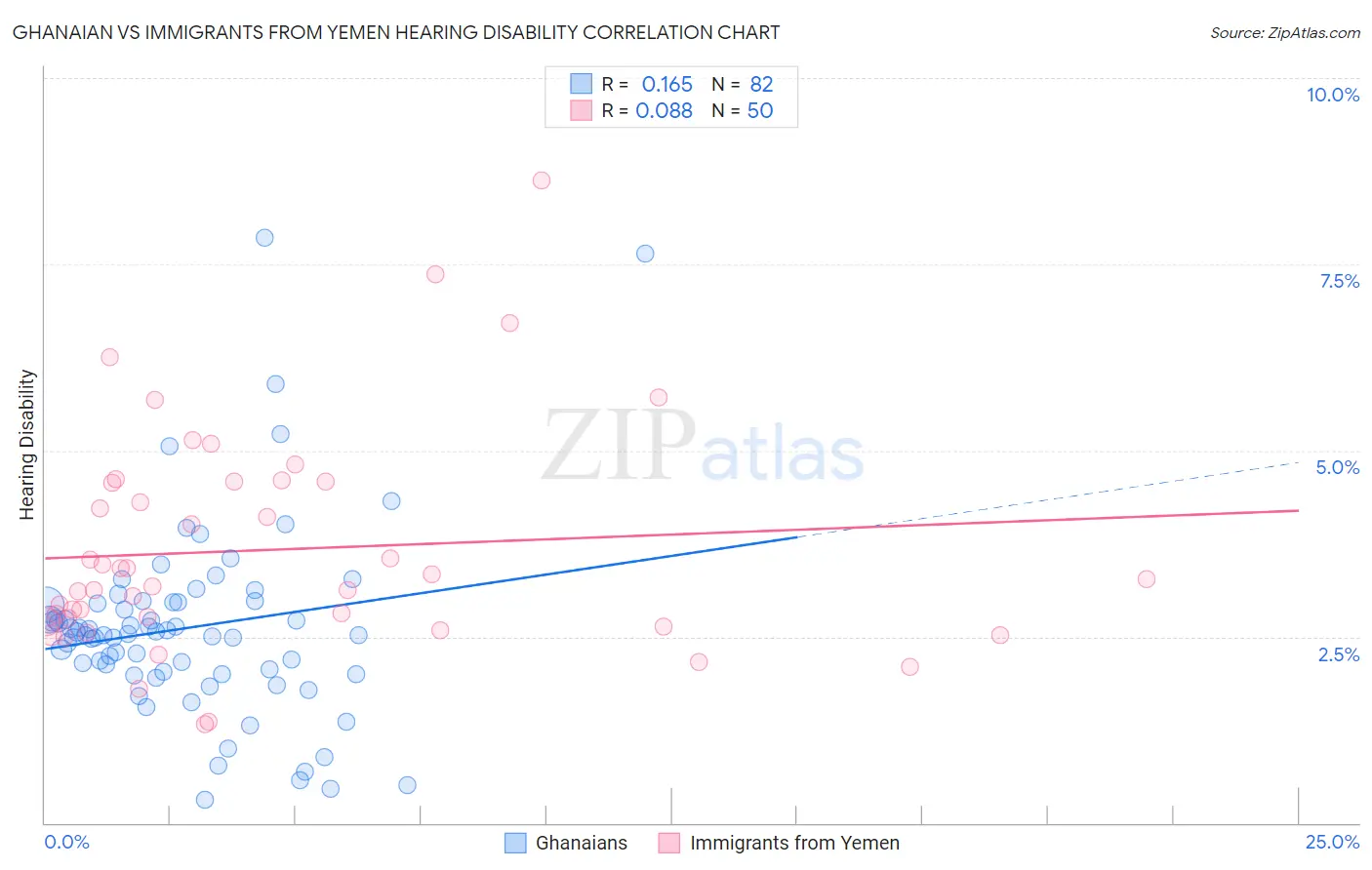 Ghanaian vs Immigrants from Yemen Hearing Disability Correlation Chart