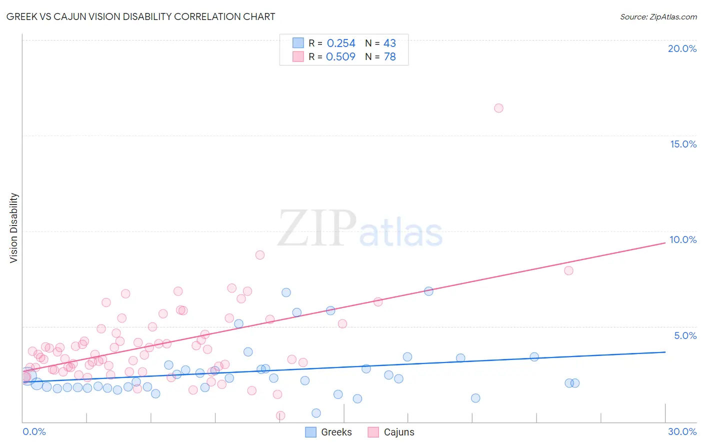 Greek vs Cajun Vision Disability Correlation Chart