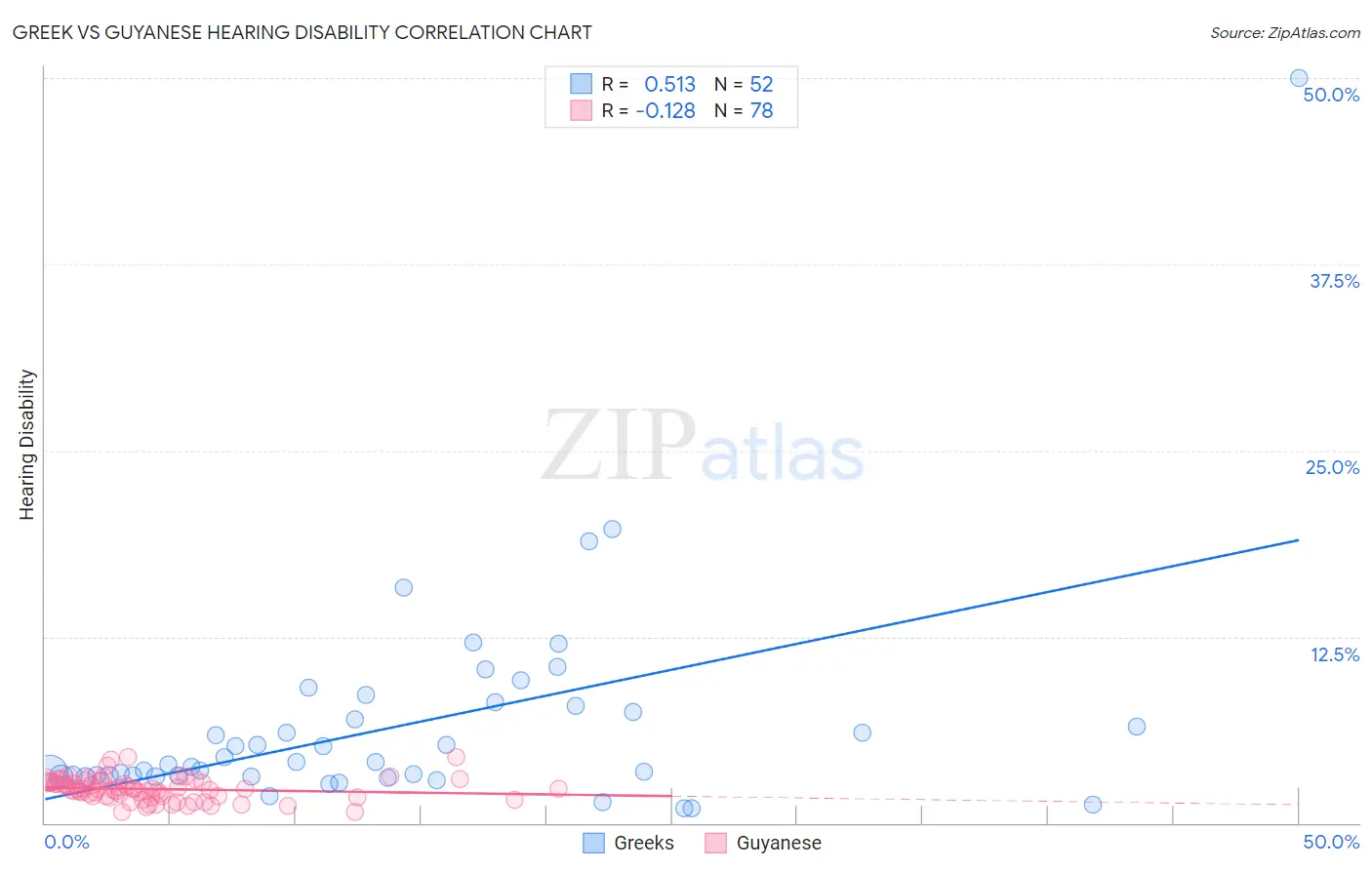 Greek vs Guyanese Hearing Disability Correlation Chart