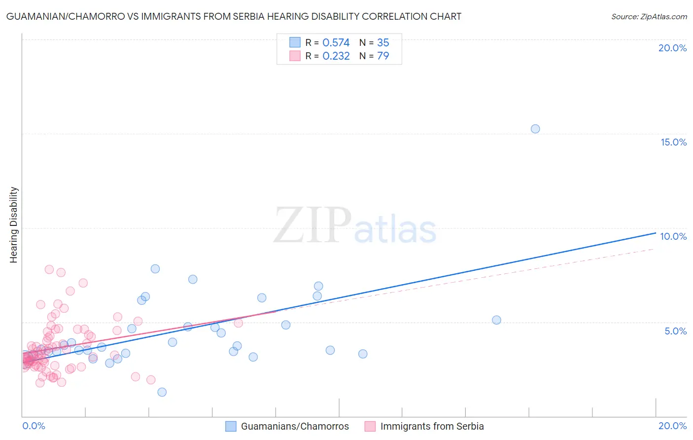 Guamanian/Chamorro vs Immigrants from Serbia Hearing Disability Correlation Chart