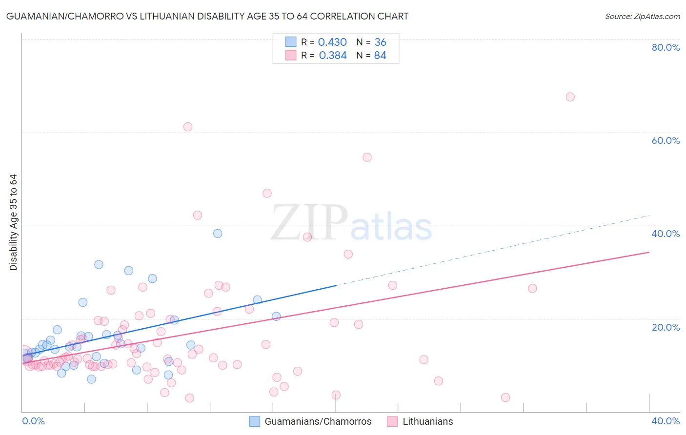 Guamanian/Chamorro vs Lithuanian Disability Age 35 to 64 Correlation Chart