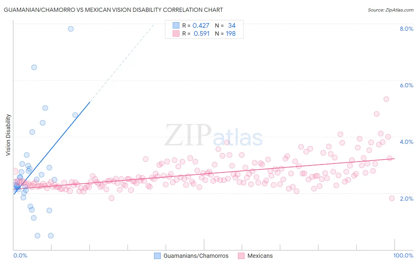 Guamanian/Chamorro vs Mexican Vision Disability Correlation Chart