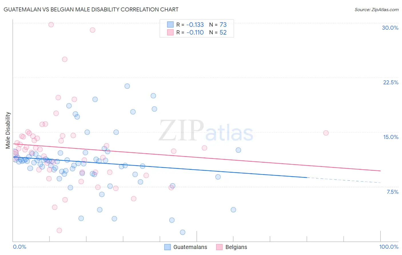 Guatemalan vs Belgian Male Disability Correlation Chart