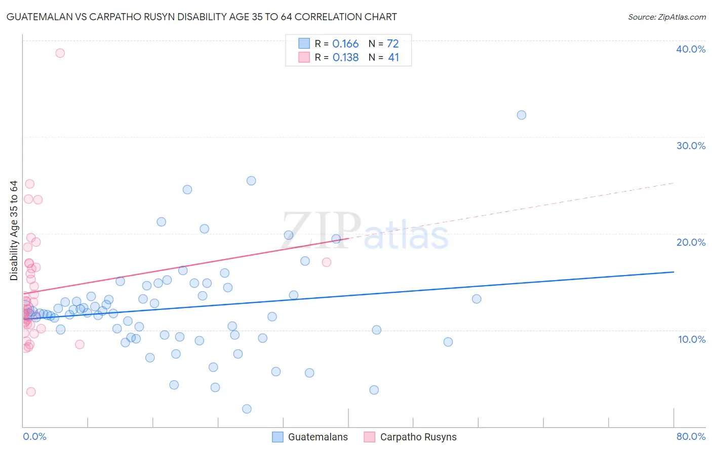 Guatemalan vs Carpatho Rusyn Disability Age 35 to 64 Correlation Chart