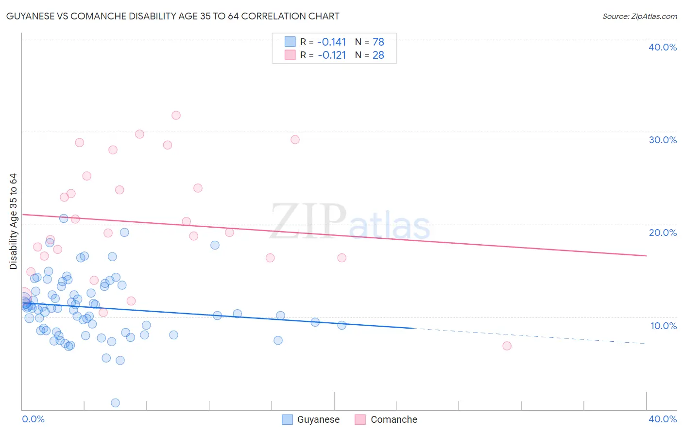 Guyanese vs Comanche Disability Age 35 to 64 Correlation Chart