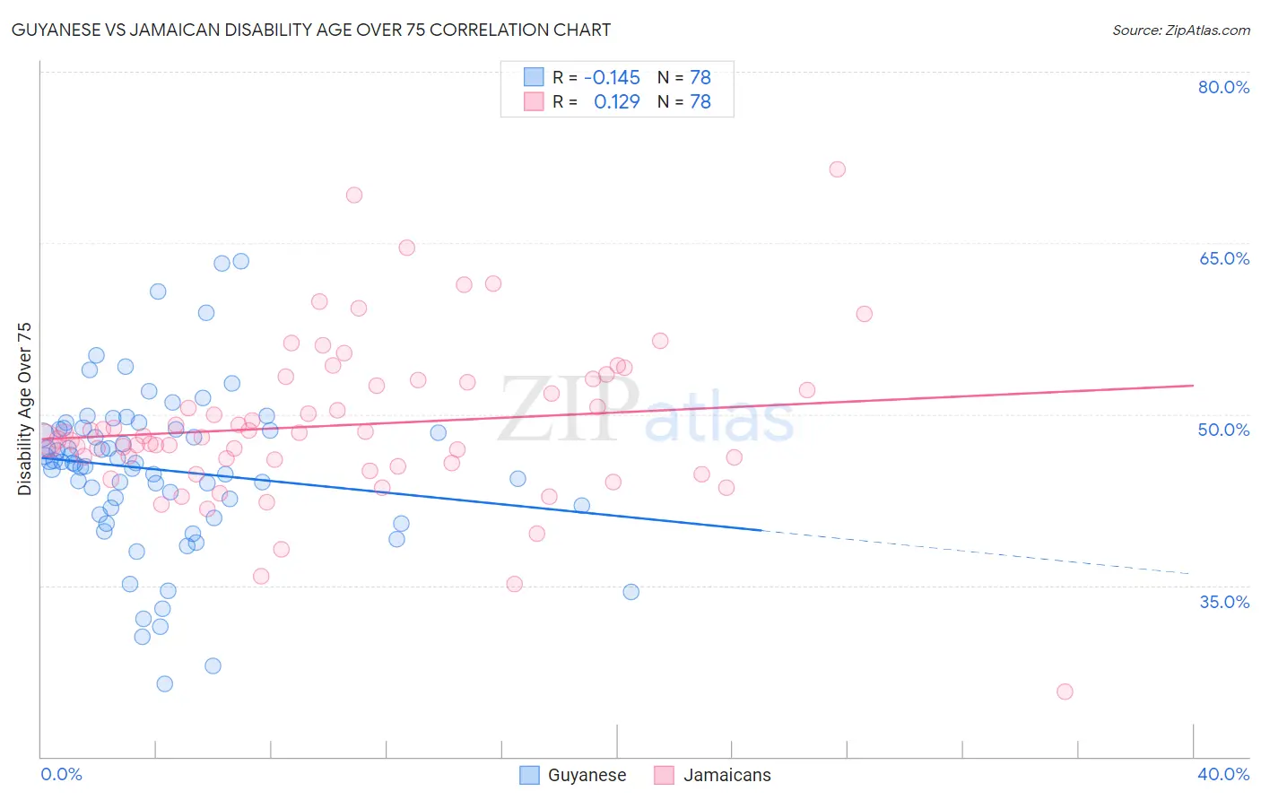 Guyanese vs Jamaican Disability Age Over 75 Correlation Chart