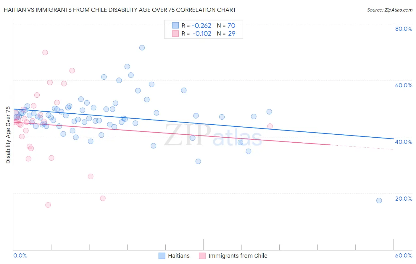 Haitian vs Immigrants from Chile Disability Age Over 75 Correlation Chart