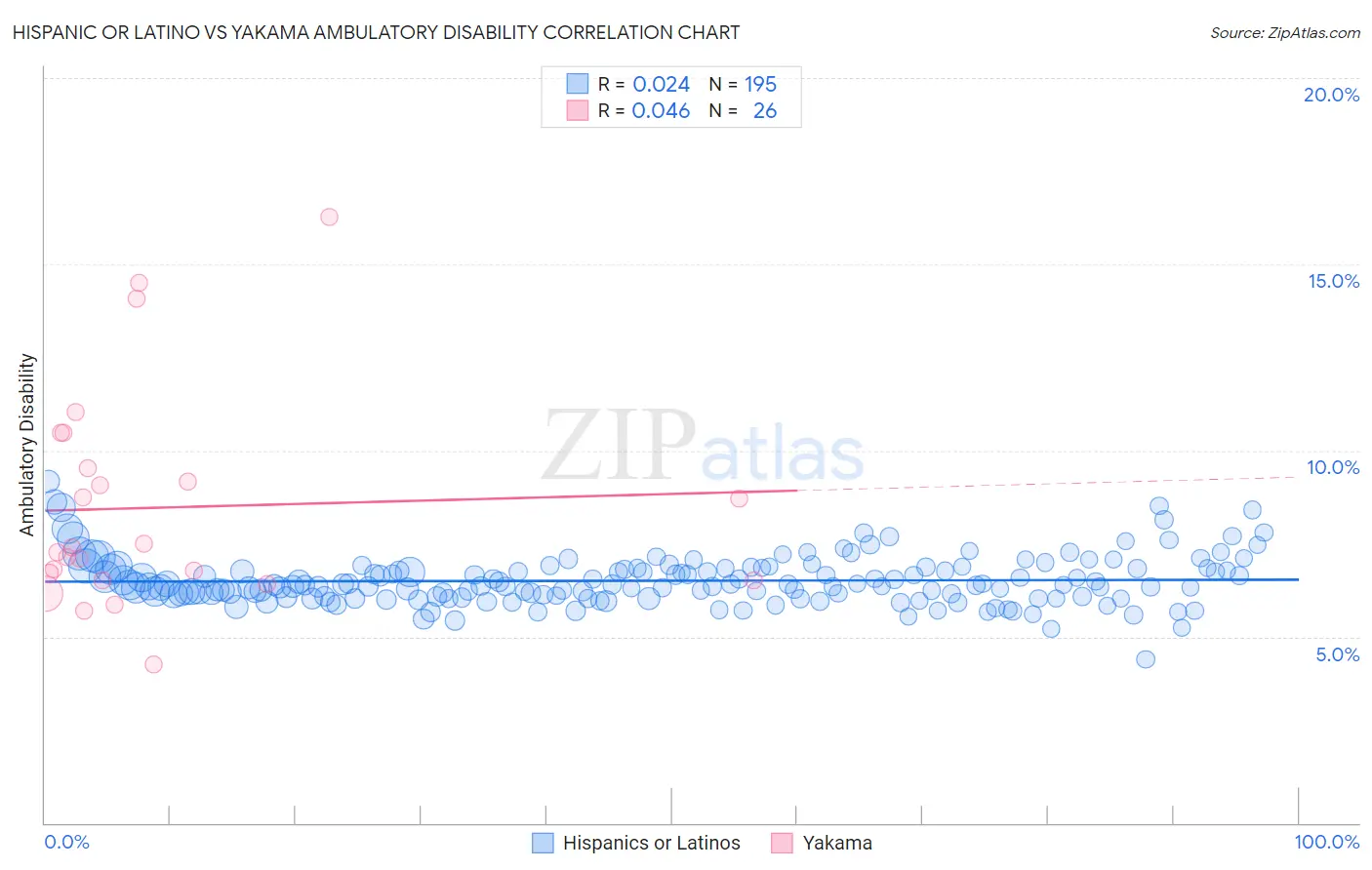 Hispanic or Latino vs Yakama Ambulatory Disability Correlation Chart