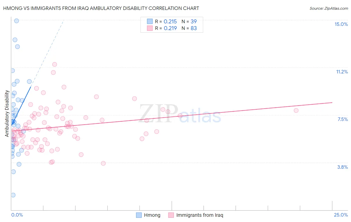Hmong vs Immigrants from Iraq Ambulatory Disability Correlation Chart