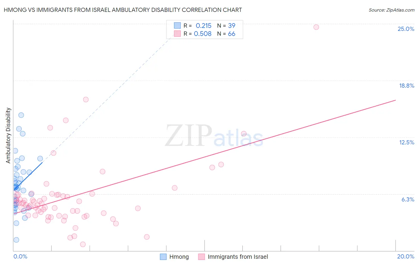 Hmong vs Immigrants from Israel Ambulatory Disability Correlation Chart