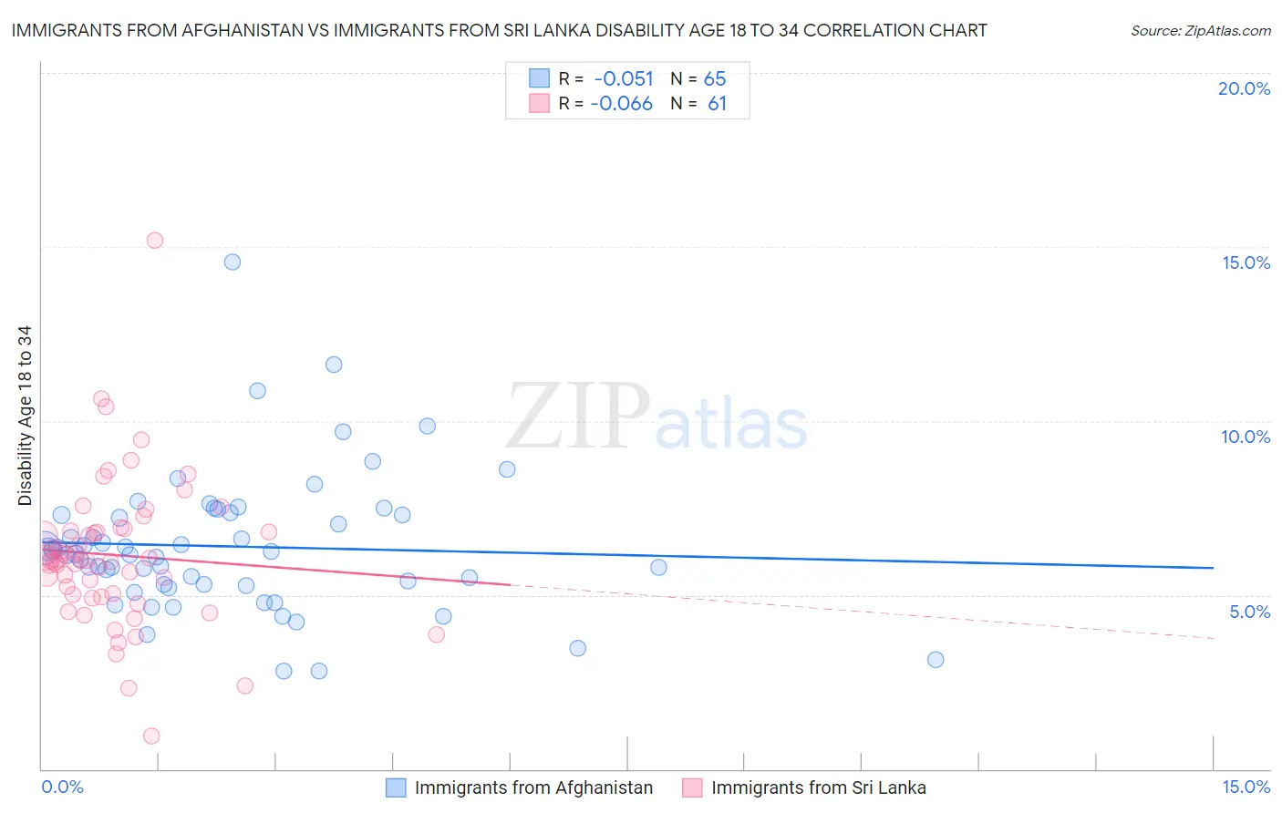 Immigrants from Afghanistan vs Immigrants from Sri Lanka Disability Age 18 to 34 Correlation Chart