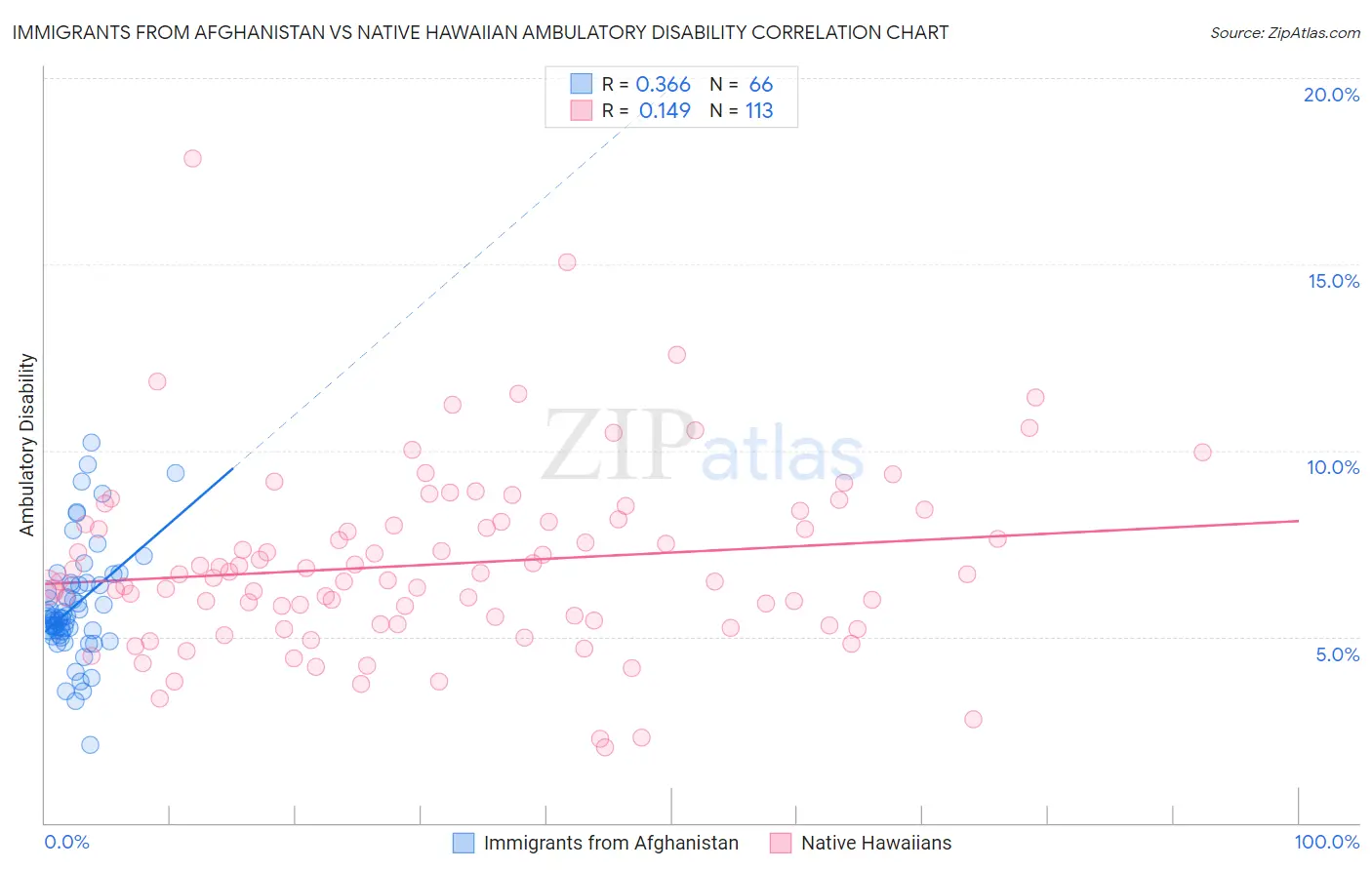 Immigrants from Afghanistan vs Native Hawaiian Ambulatory Disability Correlation Chart