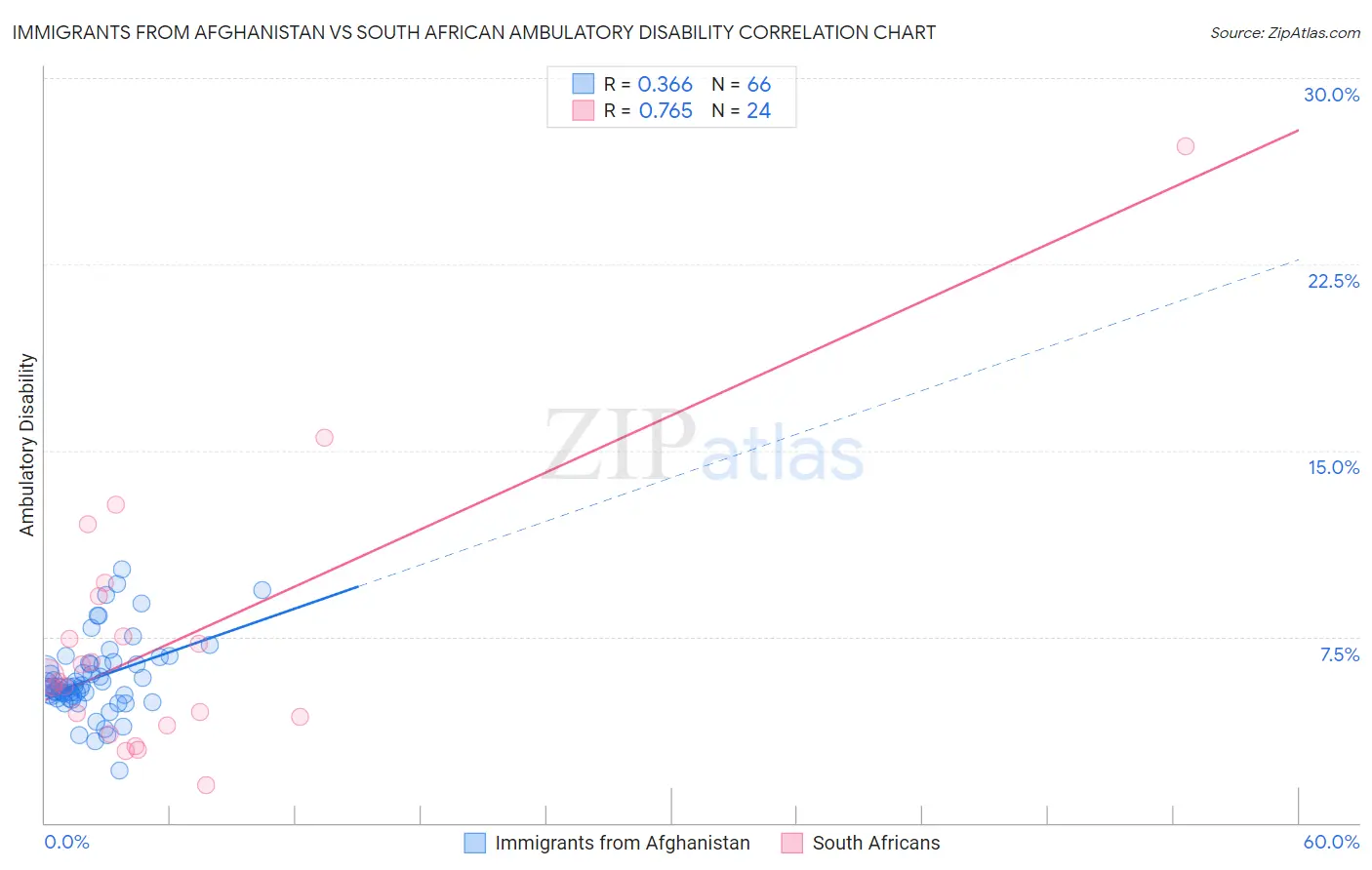 Immigrants from Afghanistan vs South African Ambulatory Disability Correlation Chart