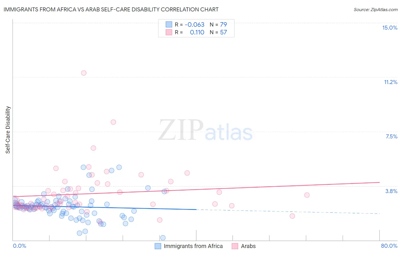 Immigrants from Africa vs Arab Self-Care Disability Correlation Chart