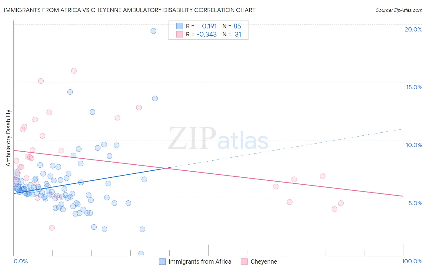 Immigrants from Africa vs Cheyenne Ambulatory Disability Correlation Chart