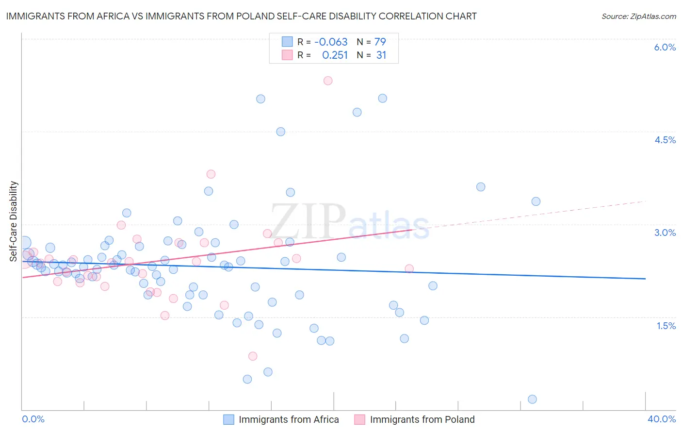 Immigrants from Africa vs Immigrants from Poland Self-Care Disability Correlation Chart