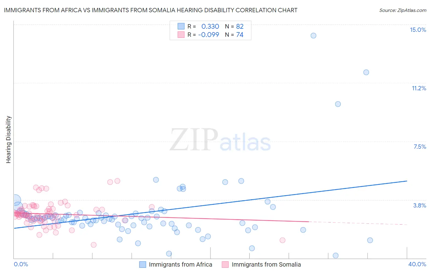 Immigrants from Africa vs Immigrants from Somalia Hearing Disability Correlation Chart
