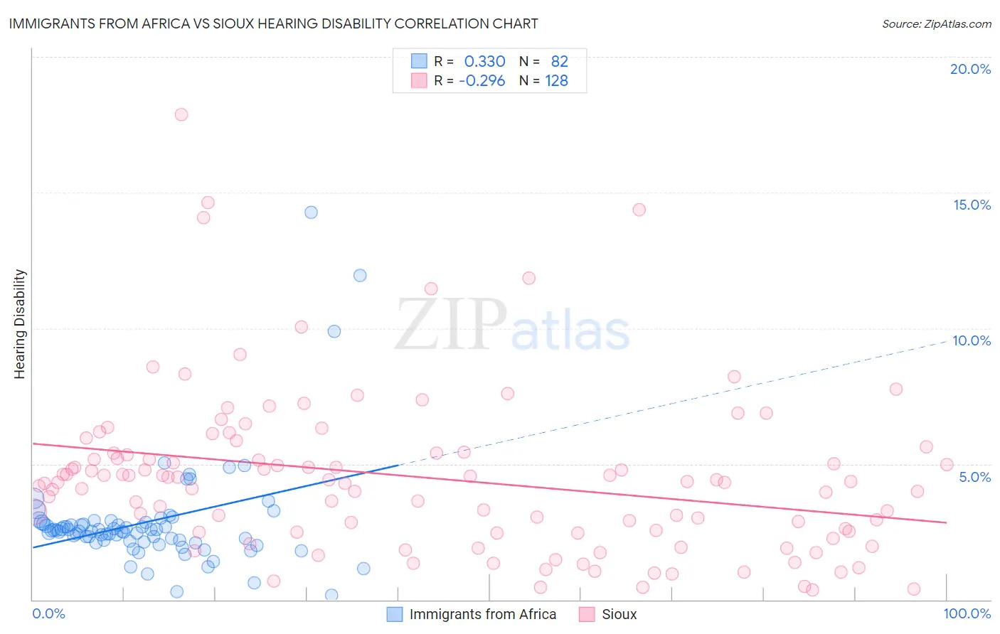 Immigrants from Africa vs Sioux Hearing Disability Correlation Chart