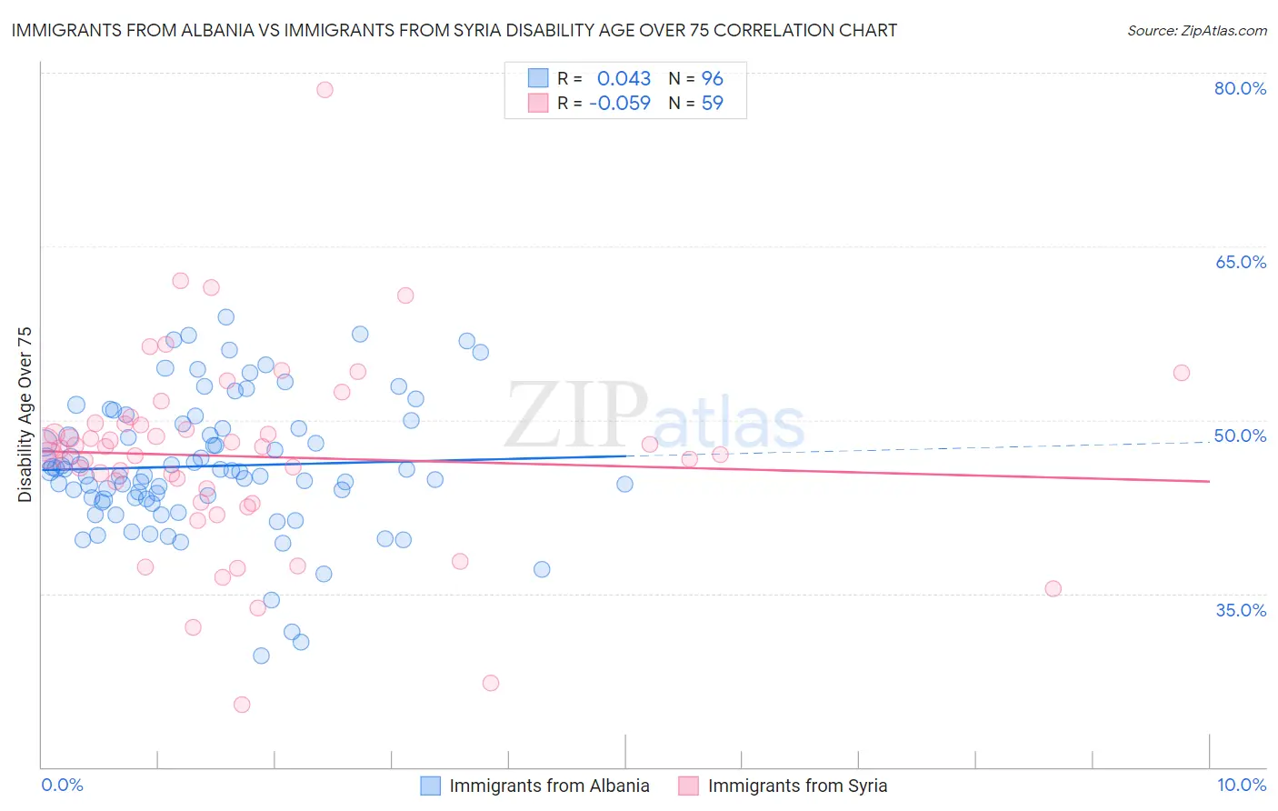 Immigrants from Albania vs Immigrants from Syria Disability Age Over 75 Correlation Chart