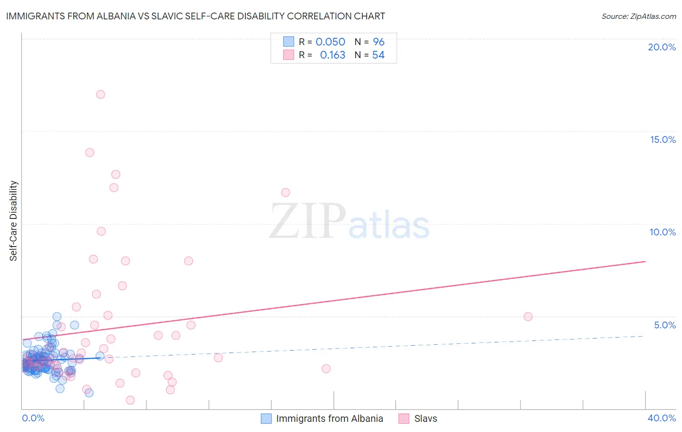 Immigrants from Albania vs Slavic Self-Care Disability Correlation Chart