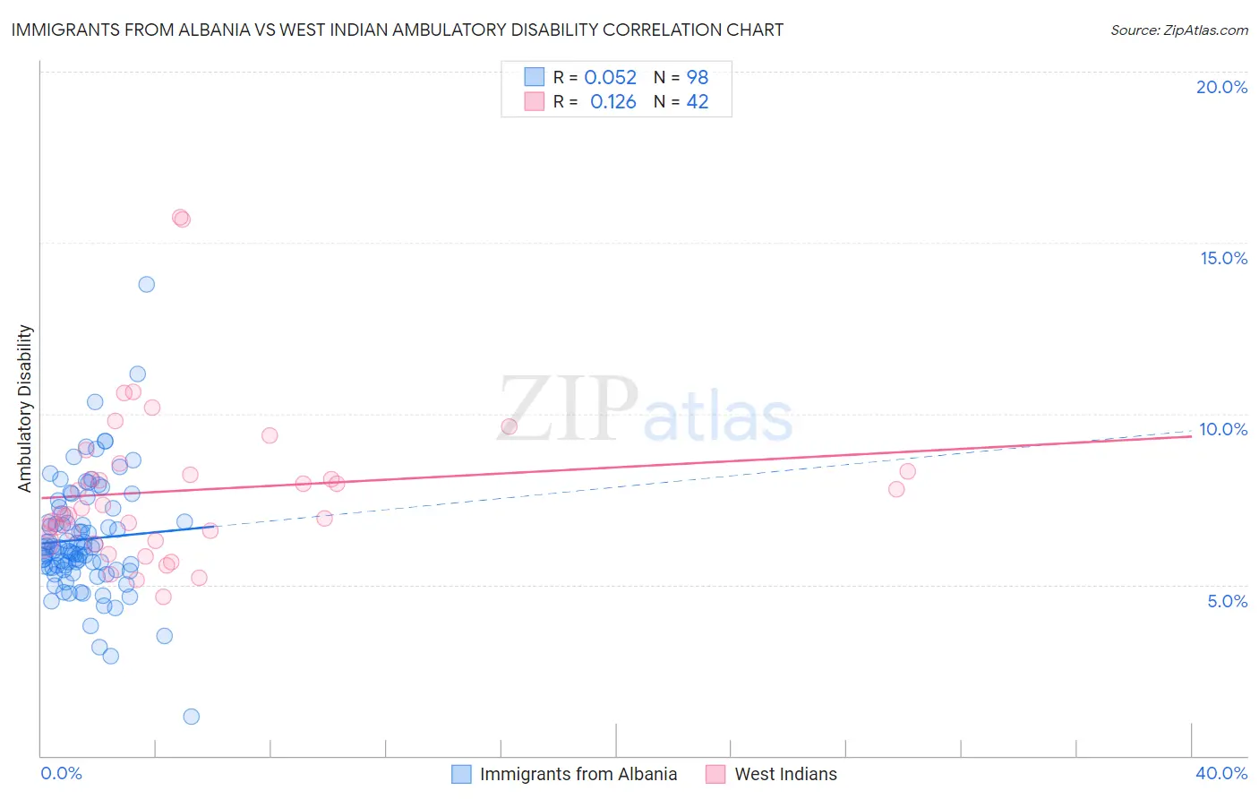 Immigrants from Albania vs West Indian Ambulatory Disability Correlation Chart