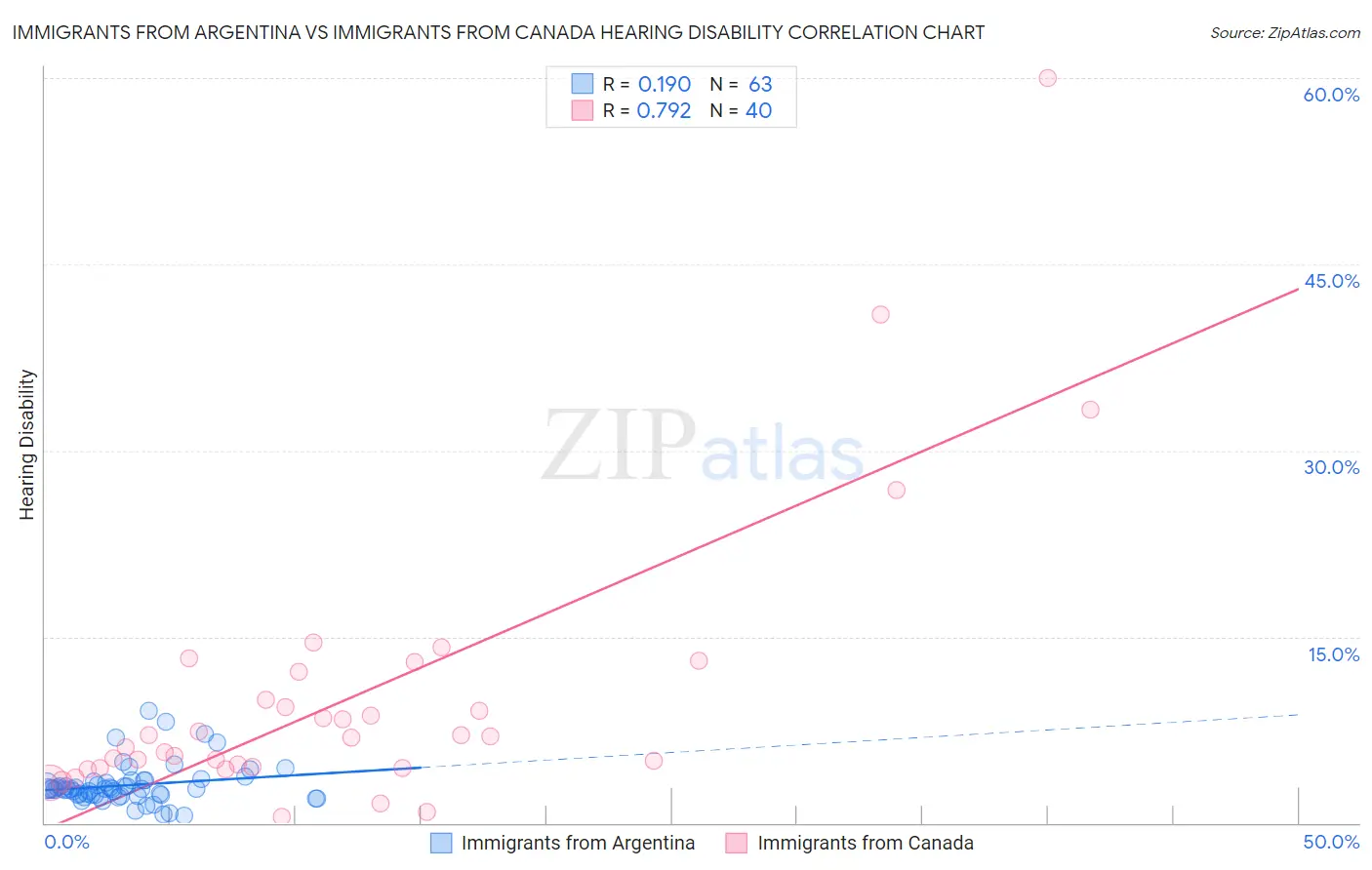 Immigrants from Argentina vs Immigrants from Canada Hearing Disability Correlation Chart