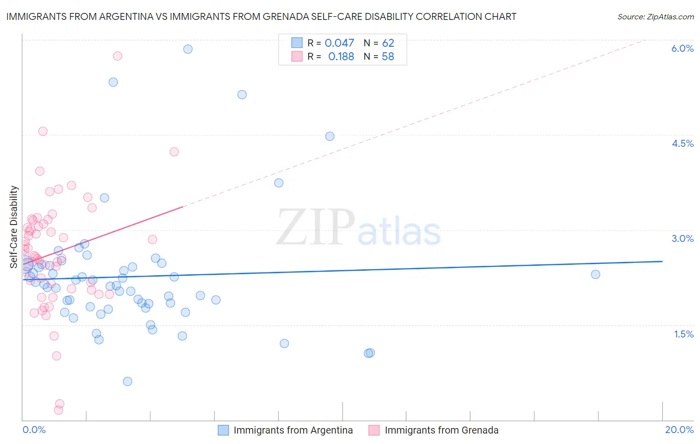 Immigrants from Argentina vs Immigrants from Grenada Self-Care Disability Correlation Chart