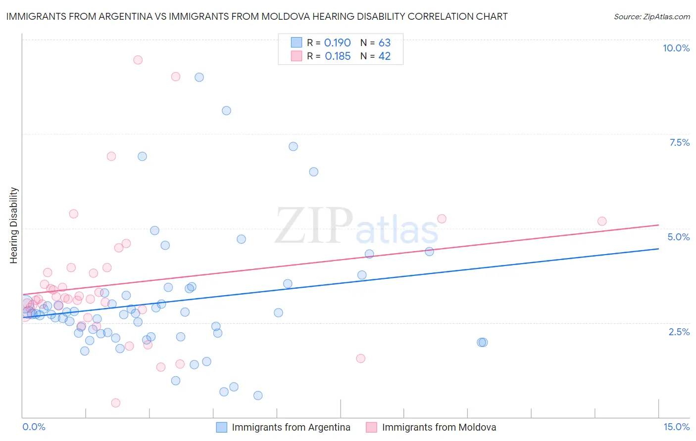 Immigrants from Argentina vs Immigrants from Moldova Hearing Disability Correlation Chart