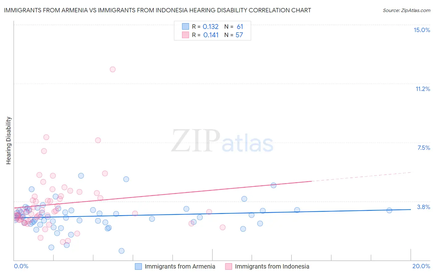 Immigrants from Armenia vs Immigrants from Indonesia Hearing Disability Correlation Chart