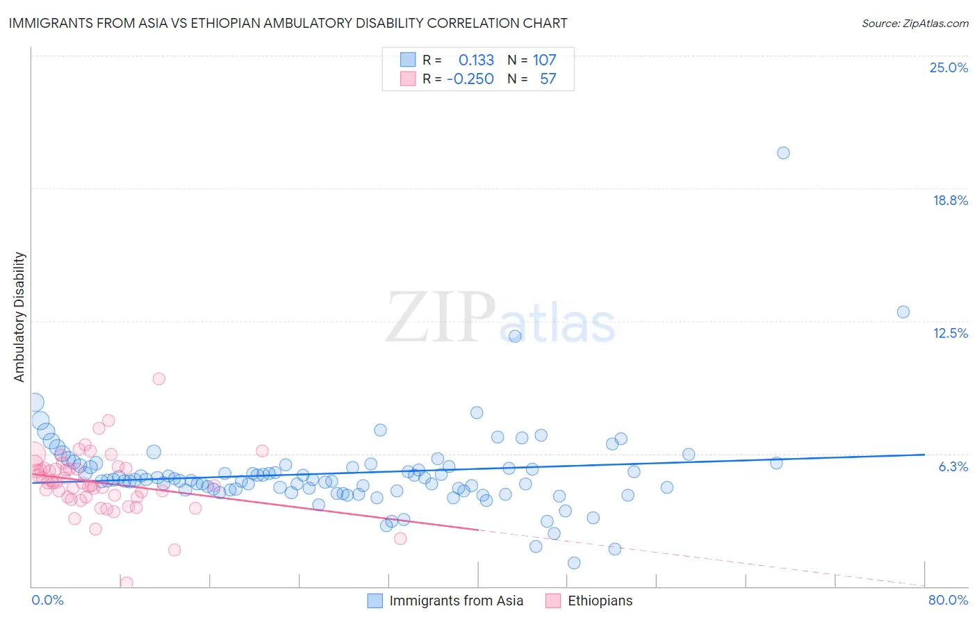 Immigrants from Asia vs Ethiopian Ambulatory Disability Correlation Chart