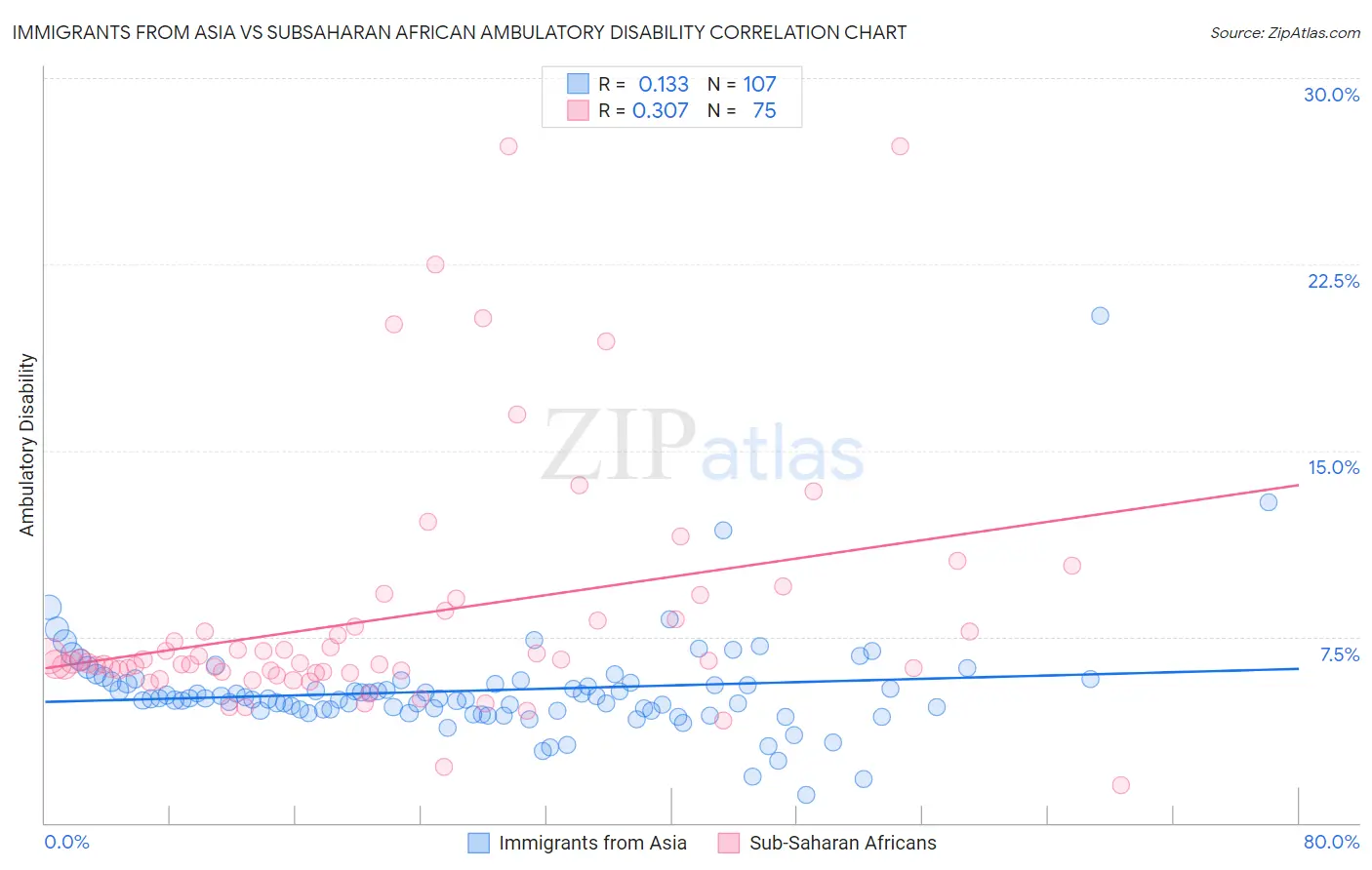 Immigrants from Asia vs Subsaharan African Ambulatory Disability Correlation Chart