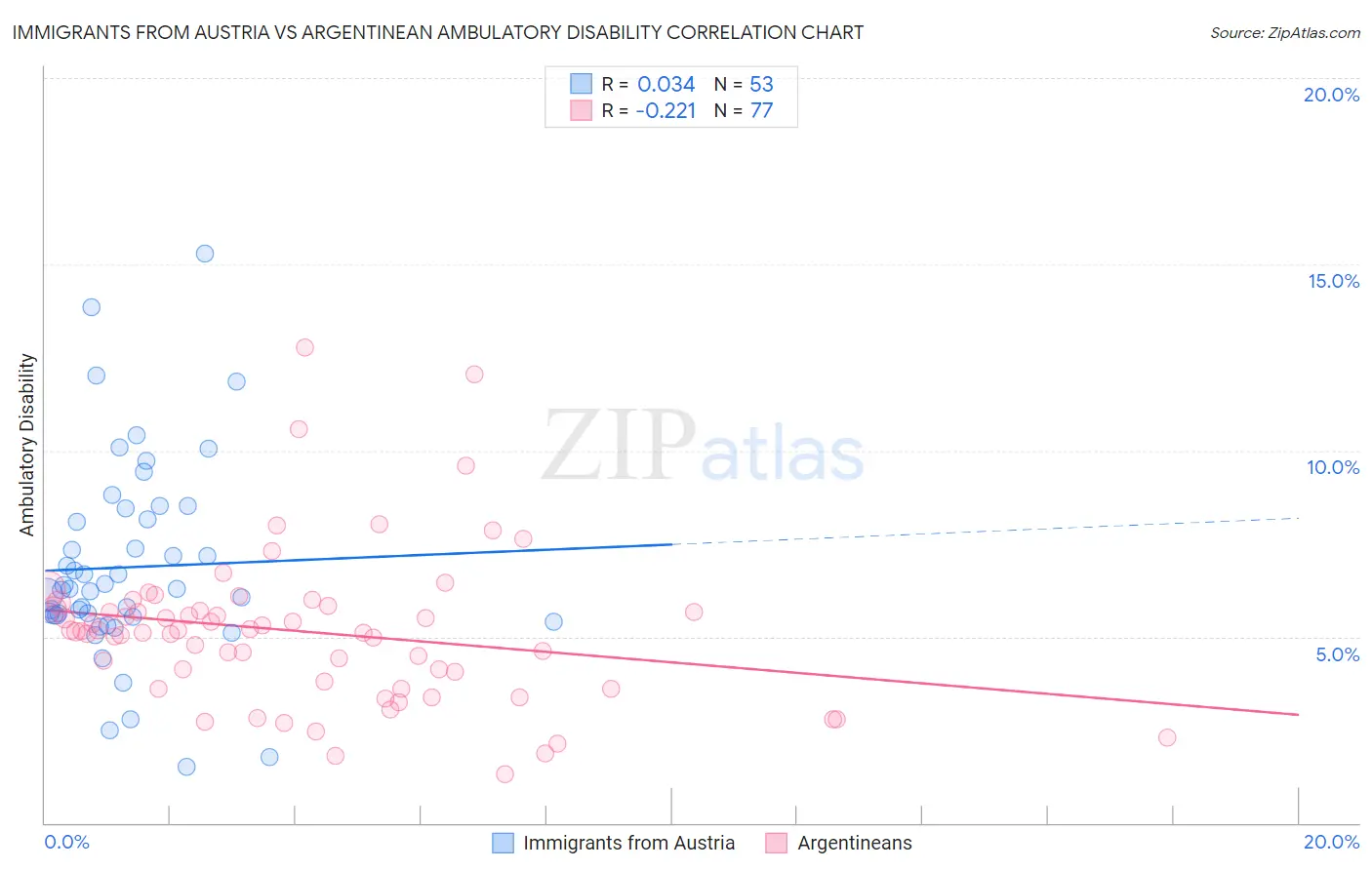 Immigrants from Austria vs Argentinean Ambulatory Disability Correlation Chart