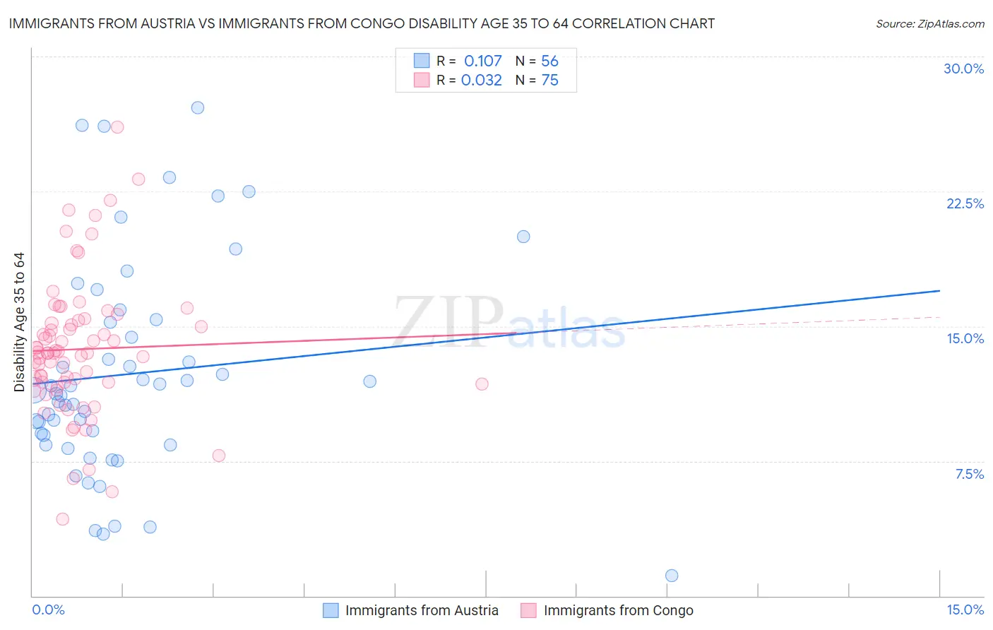 Immigrants from Austria vs Immigrants from Congo Disability Age 35 to 64 Correlation Chart