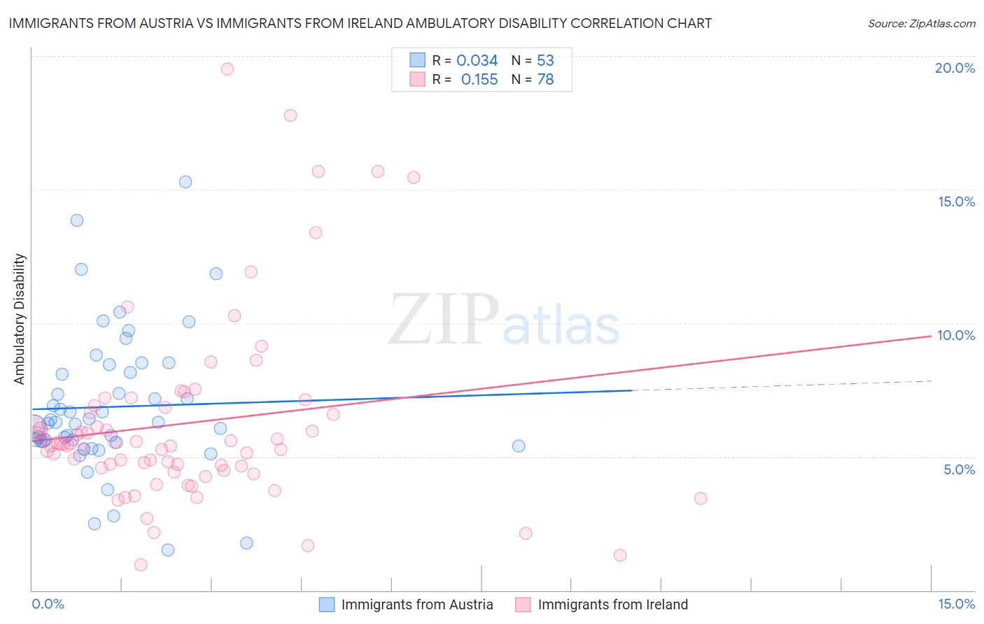 Immigrants from Austria vs Immigrants from Ireland Ambulatory Disability Correlation Chart