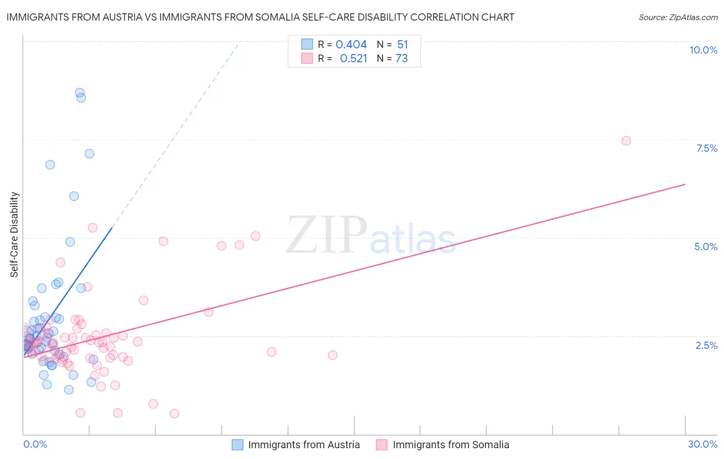Immigrants from Austria vs Immigrants from Somalia Self-Care Disability Correlation Chart