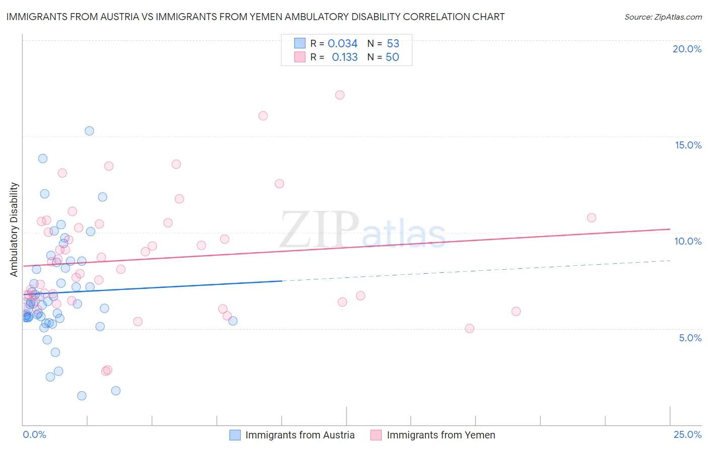 Immigrants from Austria vs Immigrants from Yemen Ambulatory Disability Correlation Chart