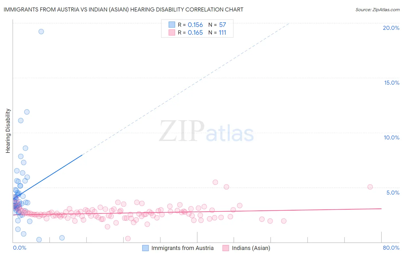 Immigrants from Austria vs Indian (Asian) Hearing Disability Correlation Chart
