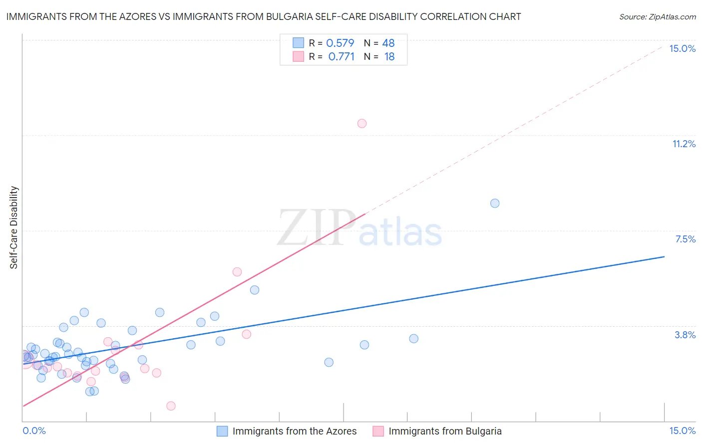 Immigrants from the Azores vs Immigrants from Bulgaria Self-Care Disability Correlation Chart