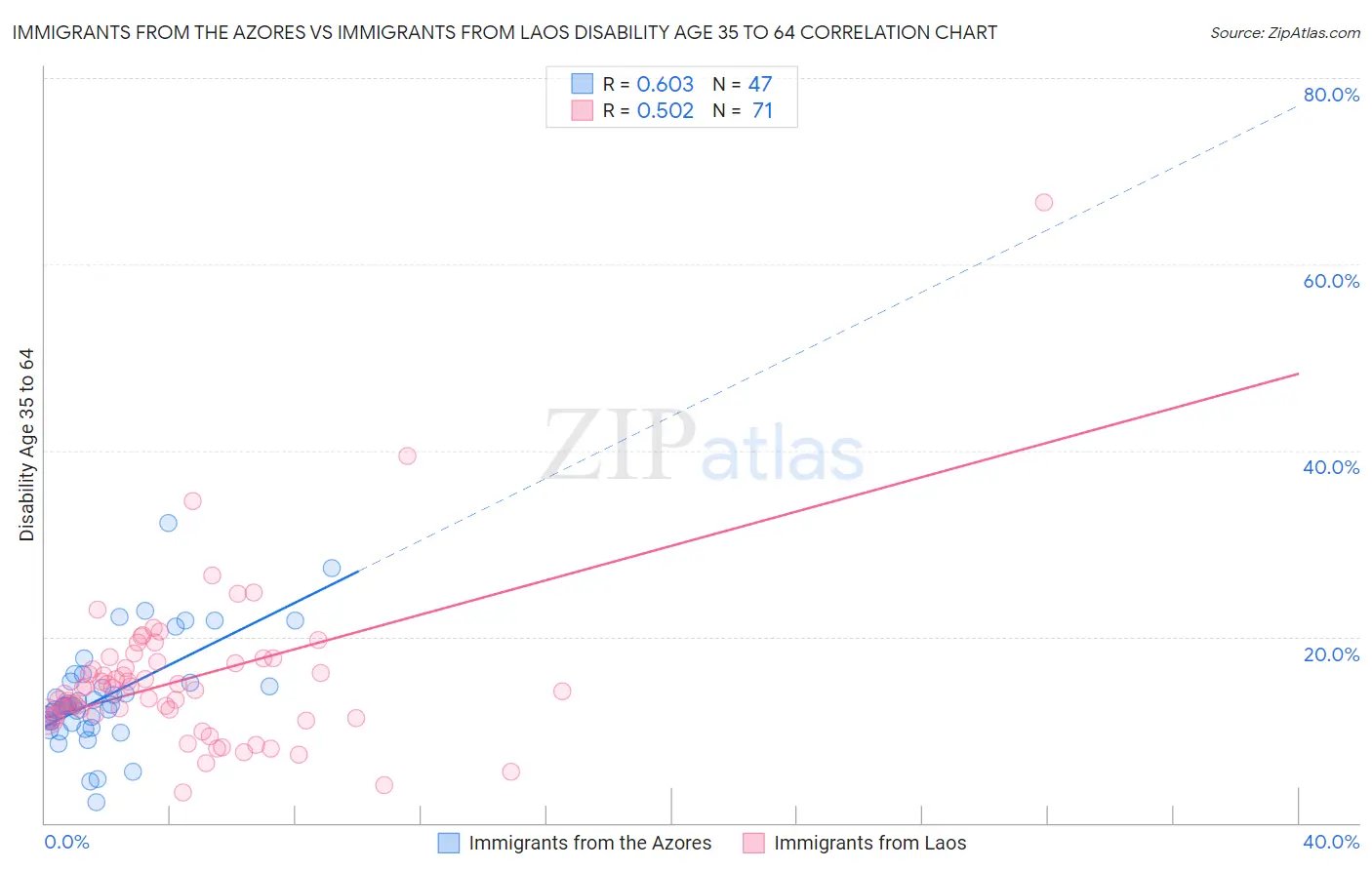 Immigrants from the Azores vs Immigrants from Laos Disability Age 35 to 64 Correlation Chart