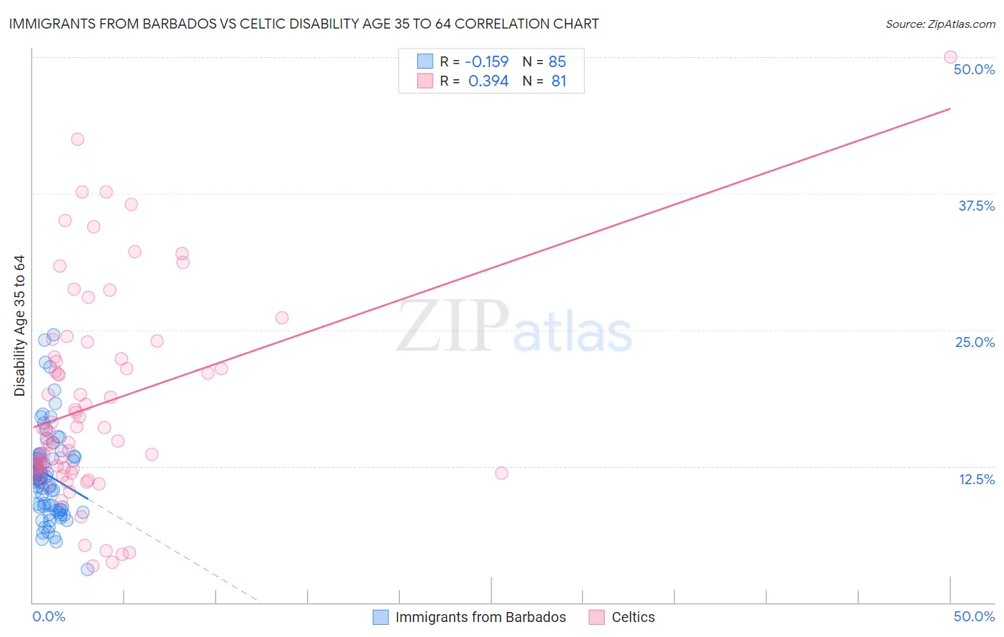 Immigrants from Barbados vs Celtic Disability Age 35 to 64 Correlation Chart