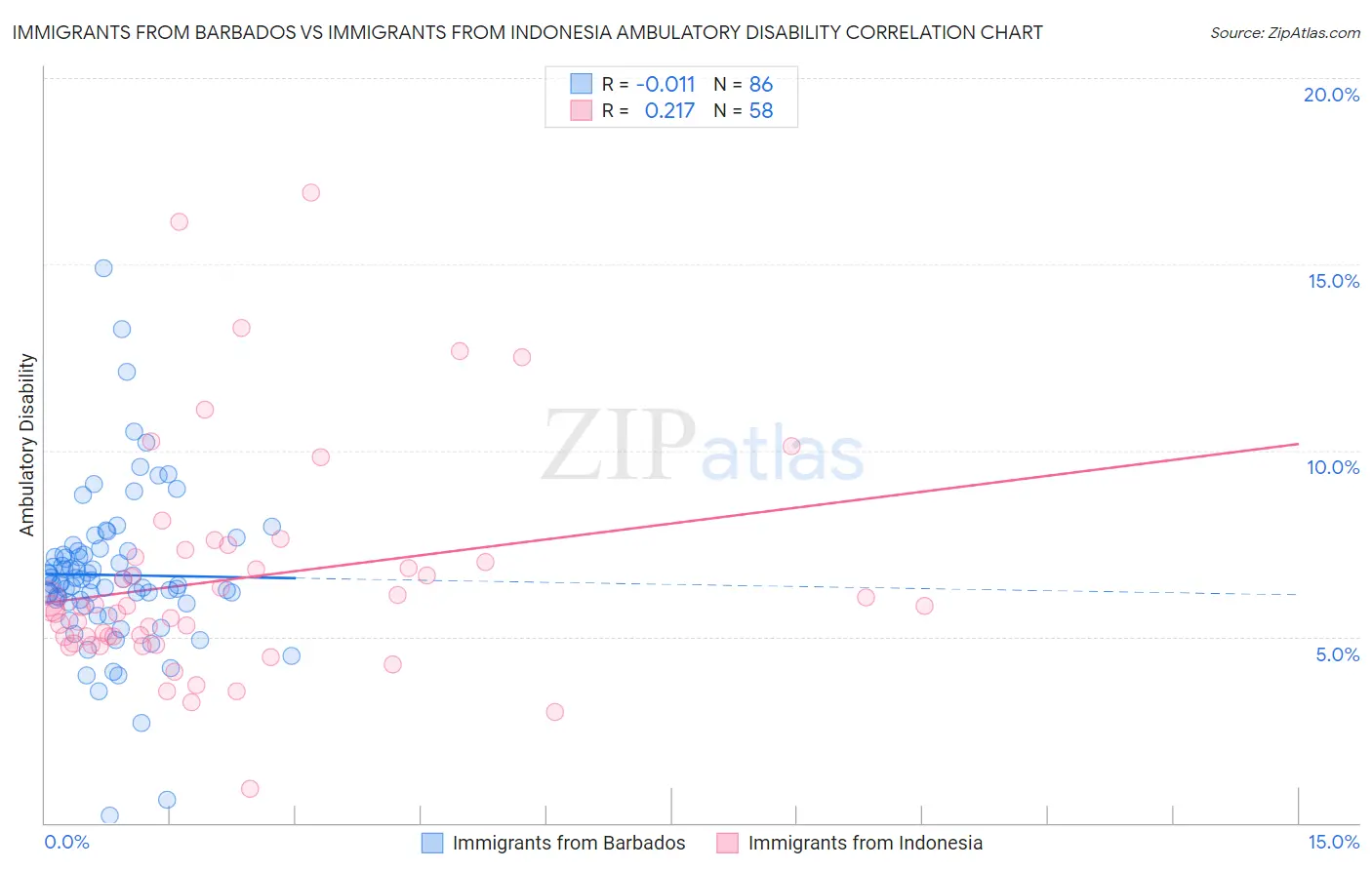 Immigrants from Barbados vs Immigrants from Indonesia Ambulatory Disability Correlation Chart