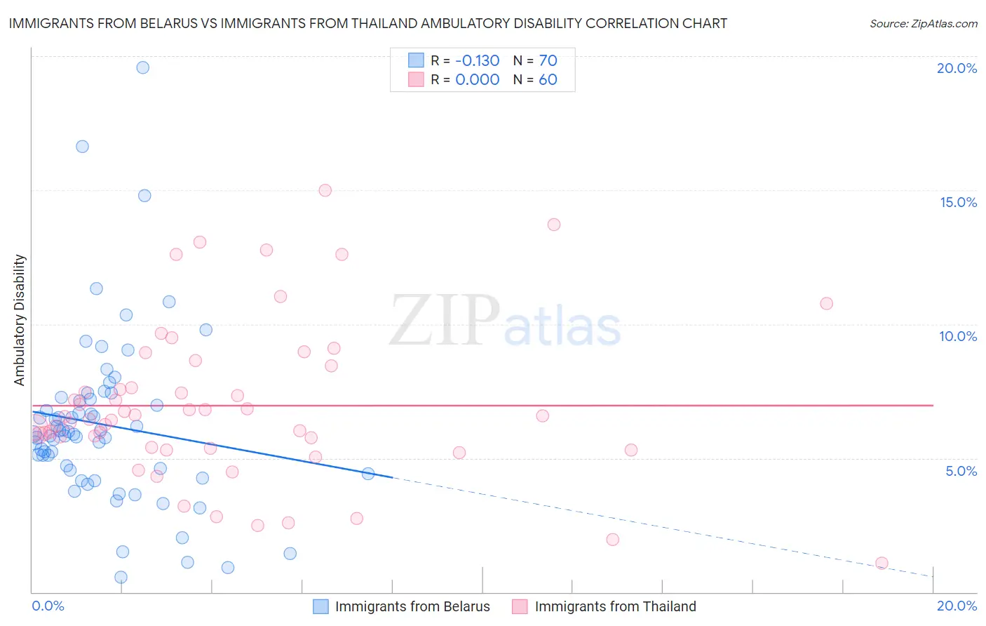Immigrants from Belarus vs Immigrants from Thailand Ambulatory Disability Correlation Chart