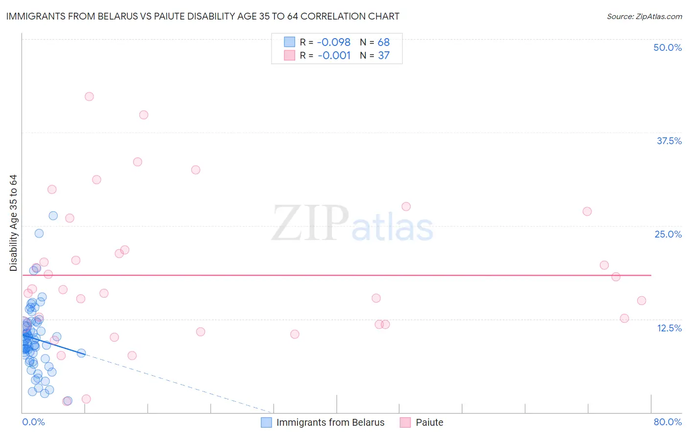 Immigrants from Belarus vs Paiute Disability Age 35 to 64 Correlation Chart