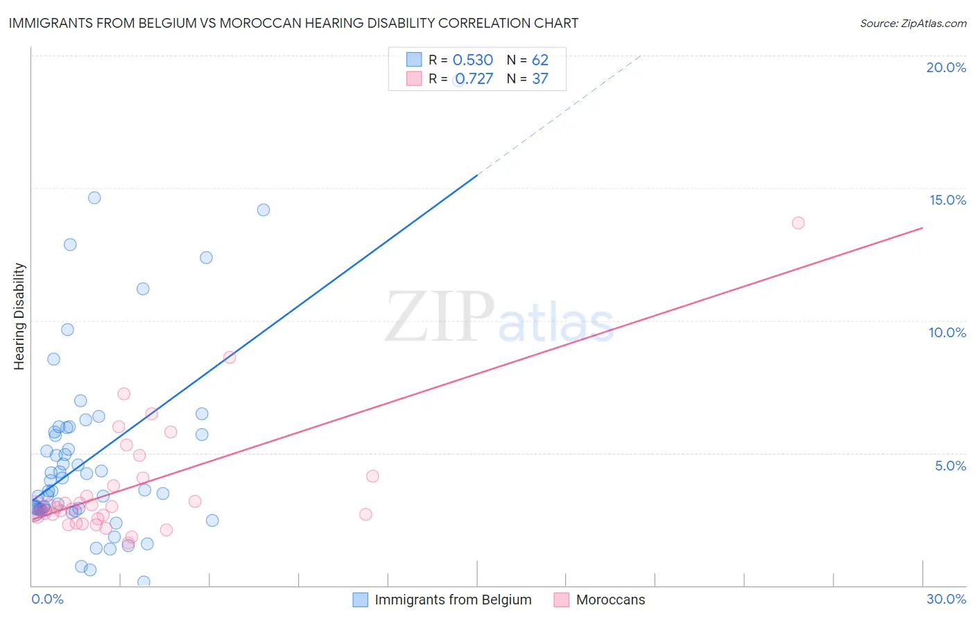 Immigrants from Belgium vs Moroccan Hearing Disability Correlation Chart